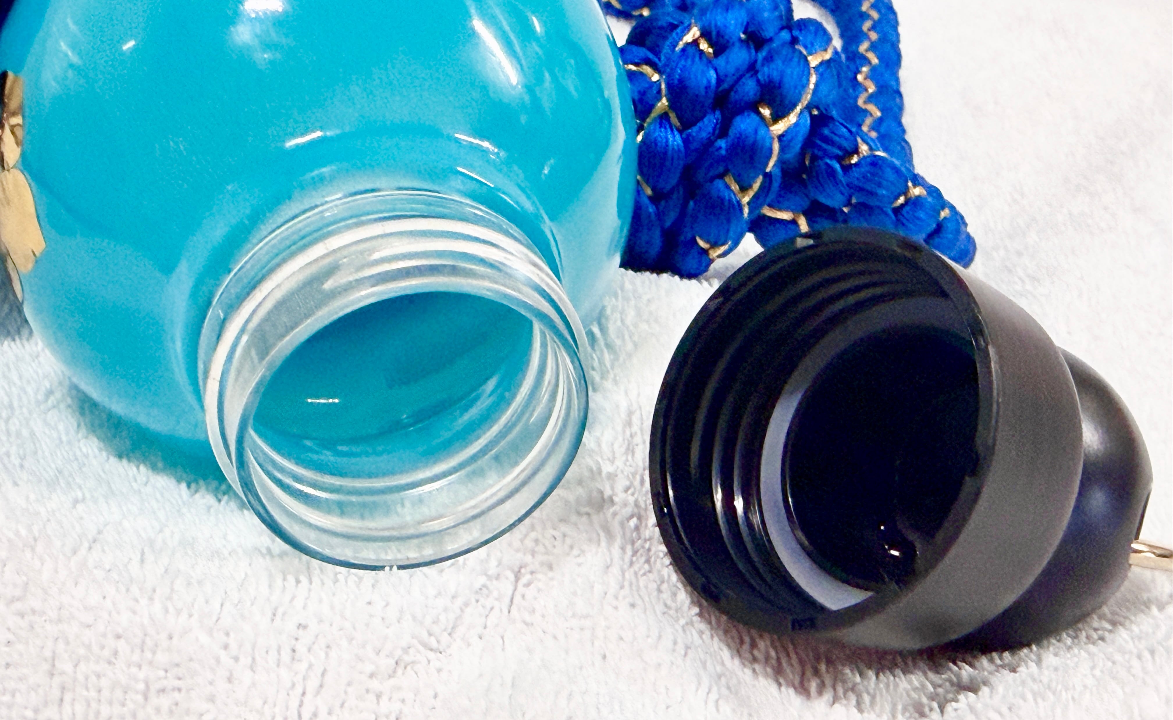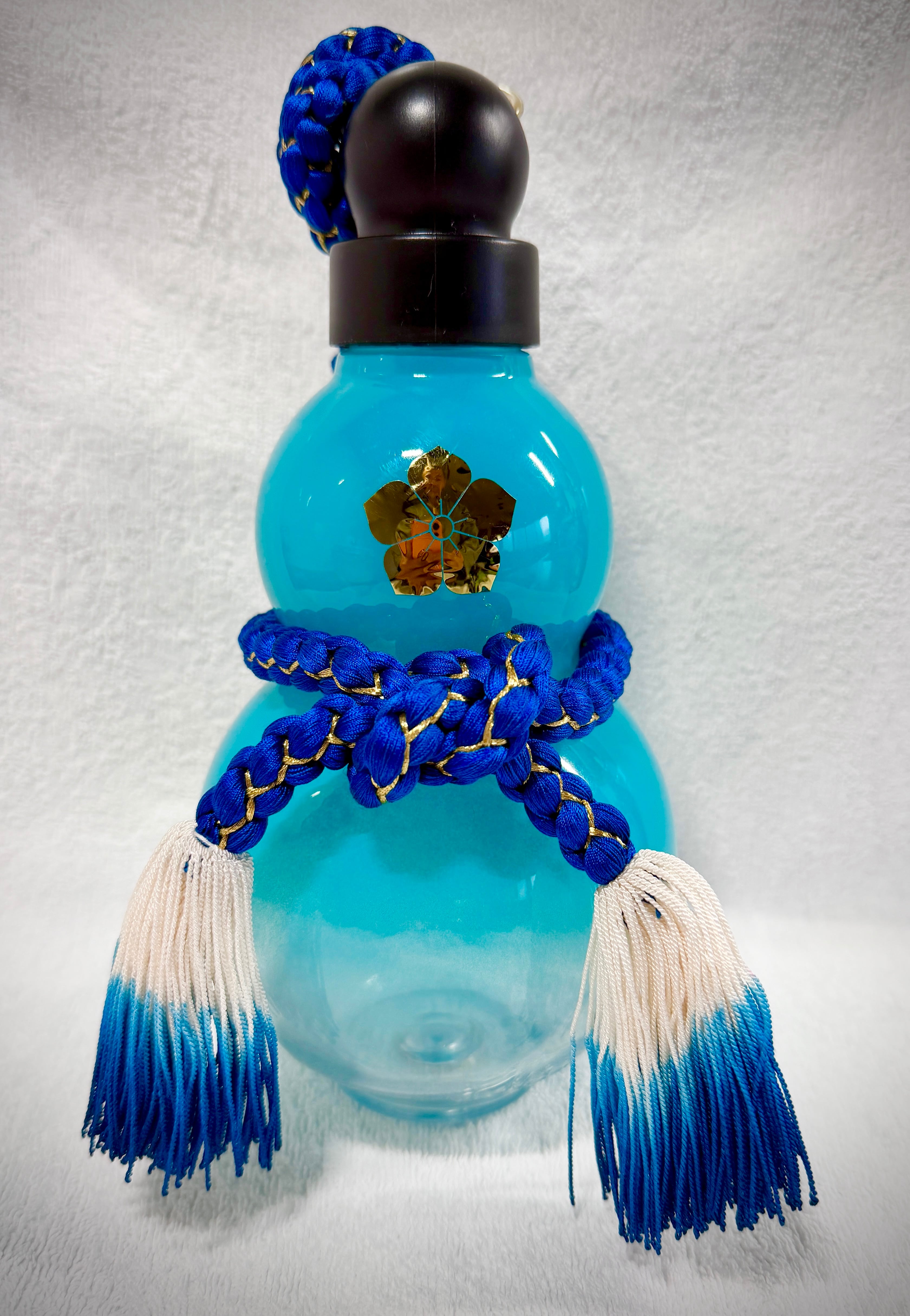 容量は約800mlで、たっぷりと水分を持ち運ぶことができます。水色に染め上げられた桔梗紋の金箔貼りが華やかさを加え、どんなシーンでも映える一品となっています。